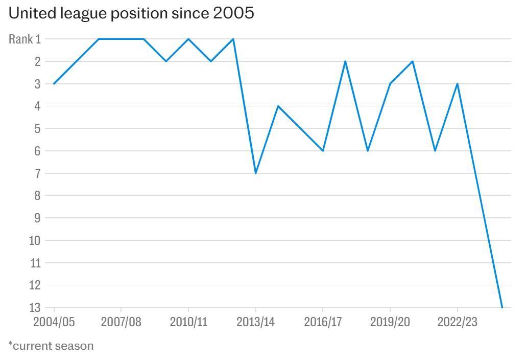 与此同时,这个家族见证了曼联在英格兰足坛霸主地位的崩塌——后弗格森时代的持续低迷,以及如今在英力士主导下俱乐部管理的财务困局。